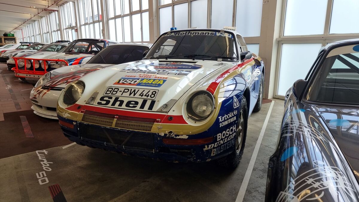 Отваряме вратата, поглеждаме вдясно и виждаме автомобил, спечелил Рали Д ар през 1986 г одина - Porsche 959, а до него е и вторият автомобил, който завършва на втора позиция с легендата Джаки Икс зад волана. Само по себе си, "959" като модел бележи огромен технологичен прогрес за марката и става една от най-ярките икони на автомобилостроенето.