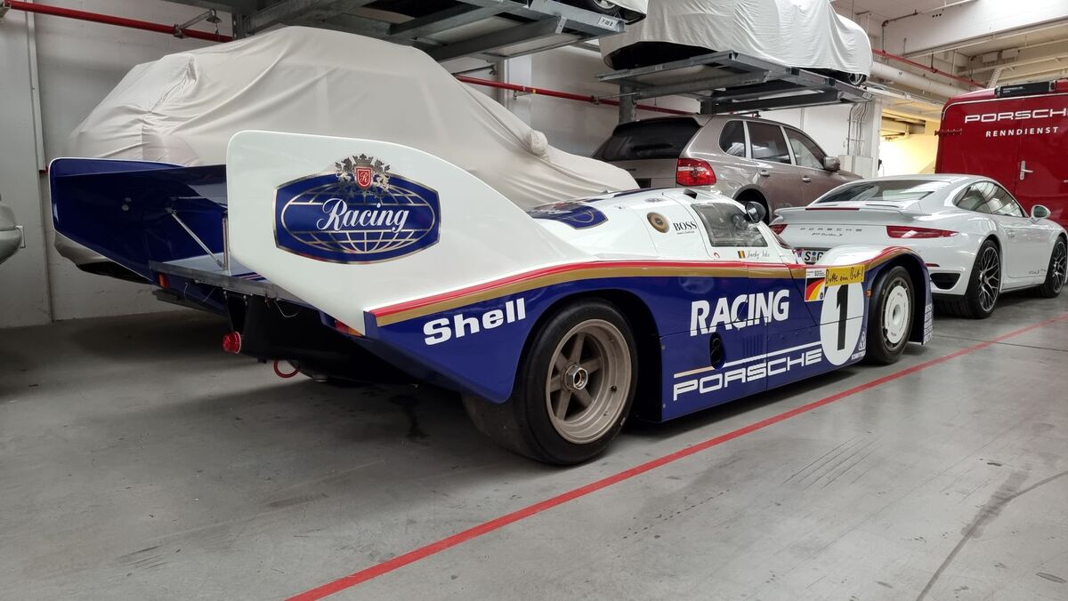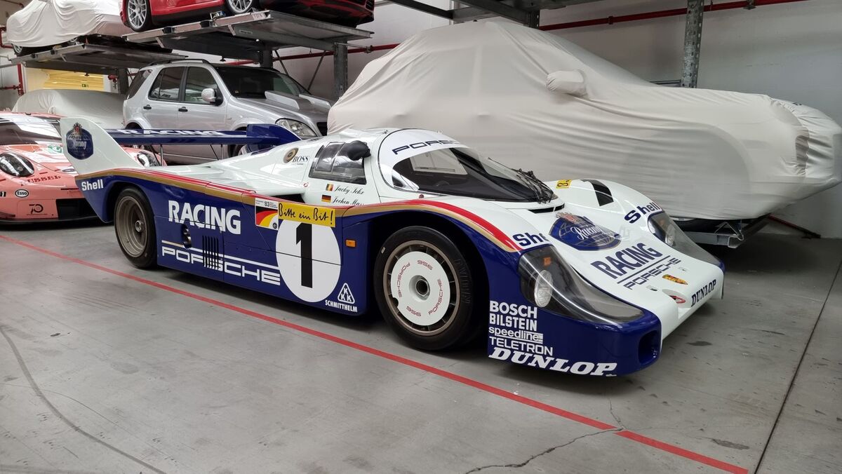 На летището ни очакваше... Още един шампионски автомобил от Льо Ман и то какъв - Porsche 956, което печели през 1982 година с Джаки Иск и Дерек Бел зад волана. Машина тежаща само 820 килограма с мощност от цели 625 конски сили от 2.7 литров турбо двигател със сложно въздушно-водно охлаждане.