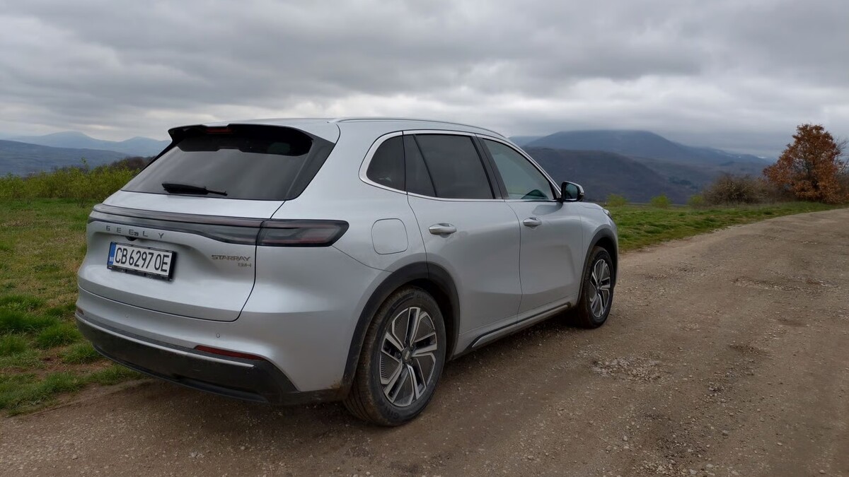 Интересът към най-новото попълнение в европейската гама на китайския производител Geely - Starray EM-i беше огромен още далеч преди моделът да се появи физически в представителствата на марката. Причините за това са многобройни, но може би най-важната измежду тях е забележителното от всяка възможна гледна точка съотношение цена-качества. Със стартовата си цена от едва 29 990 евро, Geely - Starray EM-i е plug-in хибридът с най-ниска цена на пазара в България. По-евтино може (с 2000 евро надолу) да бъде закупен единствено Leapmotor B10 REEV, но како показва още означението му, той се позиционира като електрически модел с бензинов двигател само под формата на удължител на пробега (range extender), а не като класически plug-in хибрид. По-богато екипираната версия MAX на Starray EM-i, която имахме възможност да изпробваме в продължение на три пълни денонощия и на разстояние от близо 500 километра, идва на цена от 31 990 евро. Срещу тази сума получавате дълъг 4,74 метра SUV с предно предаване и реален комбиниран пробег на бензин и ток от над 800 км, който разполага не само с всичко необходимо, а и с чисти глезотии от типа на отваряем стъкен панорамен покрив, амбиентно осветление в интериора и т.н., както и полезни функционалности от типа на head-up дисплей. Външно моделът прави приятно впечатление със своите меки линии и ненатрапчиви форми, макар че съвсем обективно погледнато, визията му доста наподобява на редица други, вече познати модели на пазара.