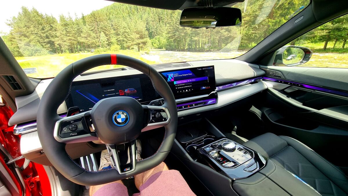 Нека да започнем от батерията, която може да съхранява точно 81.2 кВч ток - при динамично каране постигнахме между 22 и 23 кВ на 100 километра или с около 5 кВ по-нисък от този в студено време на i5 M60 седан, което е напълно приемливо за комби дълго над 5 метра. Това в пробег води до около 370 максимални километра за изминаване или около 400 при по-нормално каране - напълно достатъчни за ежедневието.