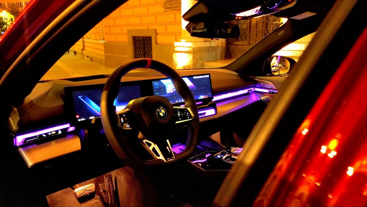 Сила и динамика, но само в сегмента на ускорението, защото от една страна новата 5-а серия е пораснала драстично и с размерите на 7-а серия от само две поколения назад и съответно е натежала, а от друга електрическото задвижване, като крайният резултат е 2425 килограма.